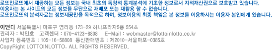 ¡á ¾Æ·¡ Á¤º¸´Â °ú°Å ´ç÷¹øÈ£ ÆÐÅÏ ¹× Åë°è ºÐ¼®¿¡ ±âÃÊÇÏ¿© ¿¹ÃøÇÑ °ÍÀ̹ǷÎ, ȸ¿ø ¿©·¯ºÐÀÇ ºÐ¼® ¹× ÆÇ´Ü¿¡ ±âÃÊÇÏ¿© ¹øÈ£¸¦ ÃßÃâÇØ º¸½Ã±â ¹Ù¶ø´Ï´Ù.